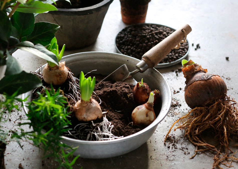 Att driva fram sina egna lökar i kruka är extra roligt eftersom man då kan välja de lite ovanliga sorterna. Om du blandar olika sorter välj sådana som blommar ungefär samtidigt. Välj stora vackra krukor och fyll dem i botten med P-jord. Sätt i lökarna tätt, gärna i flera lager med jord emellan. Täck med ca 10 cm jord. Vattna.