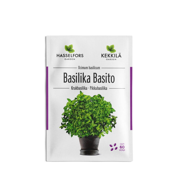Basilika Basito är en småbladig ört som passar att odlas i kruka och kan odlas inomhus året runt.
