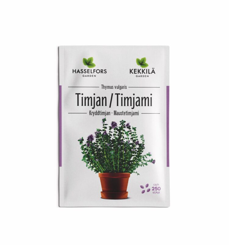 Timjan är lätt att odla i kruka. Fröna är små. Det finns 250 frön i påsen. Det räcker till ca 10-15 plantor.