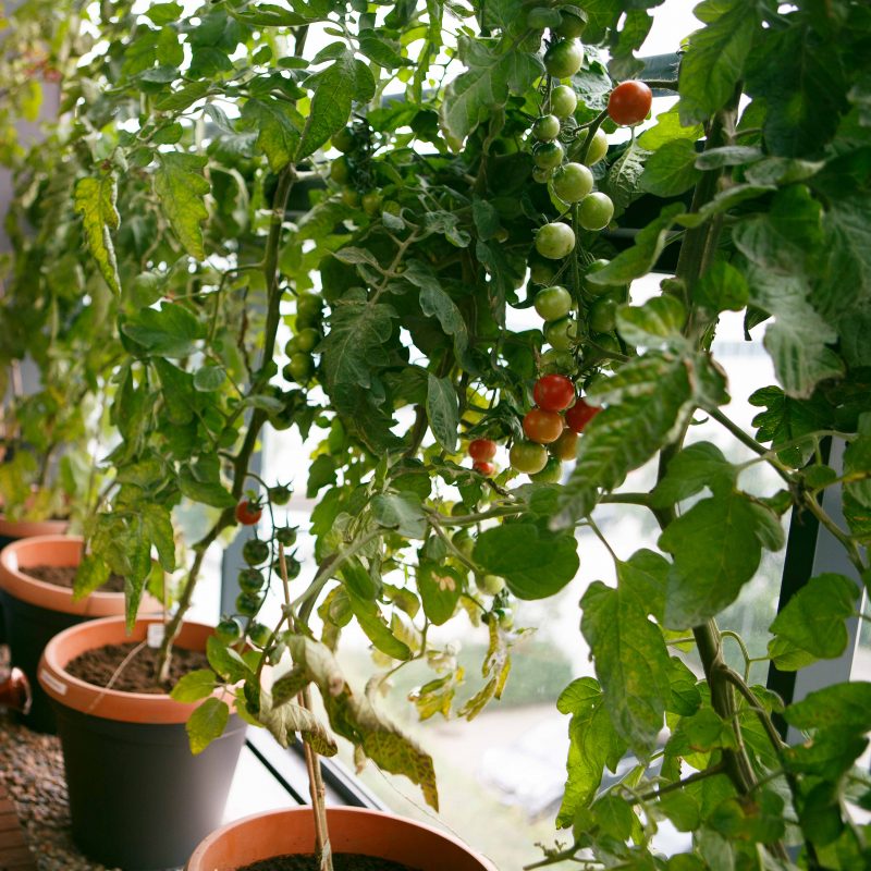 När tomaterna börjar blomma måste de pollineras för att ge frukt, finns inte tillräckligt med insekter måste man göra det för hand genom att skaka lätt på plantan eller pollinera med pensel. Bästa tiden är på förmiddagen när luften är torr och pollenet lätt släpper.